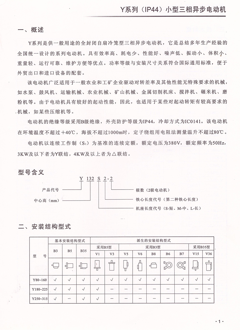 Y系列(IP44)小型三相異步電動(dòng)機(jī)技術(shù)參數(shù)