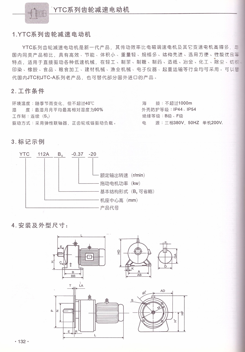 YTC系列齒輪減速電機(jī)技術(shù)參數(shù)
