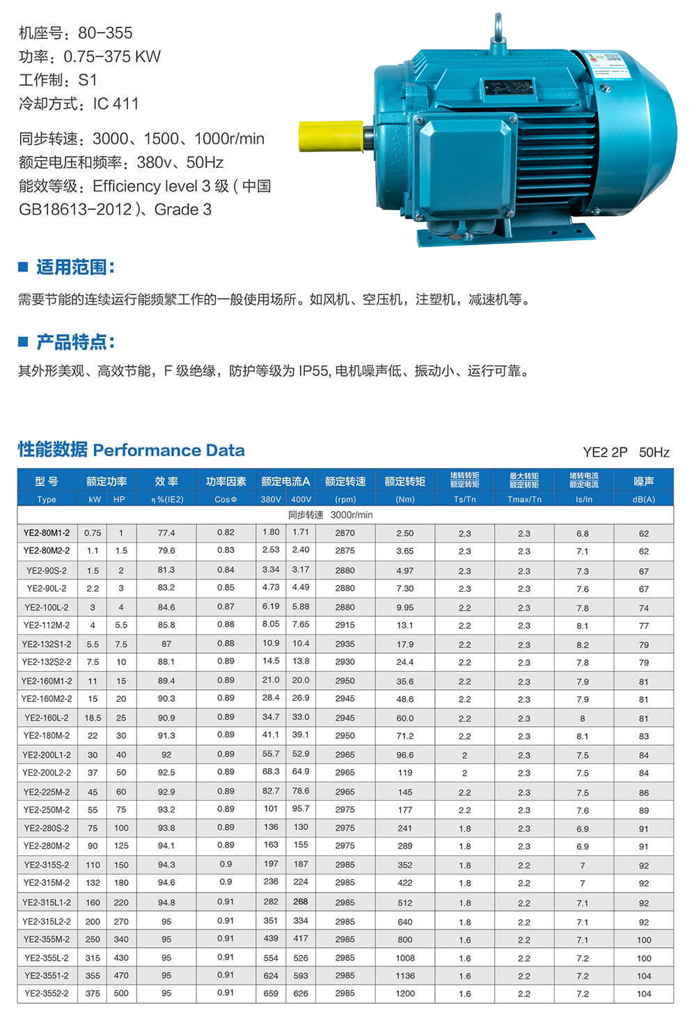 YE2系列節(jié)能高效率三相異步電動(dòng)機(jī)技術(shù)參數(shù)