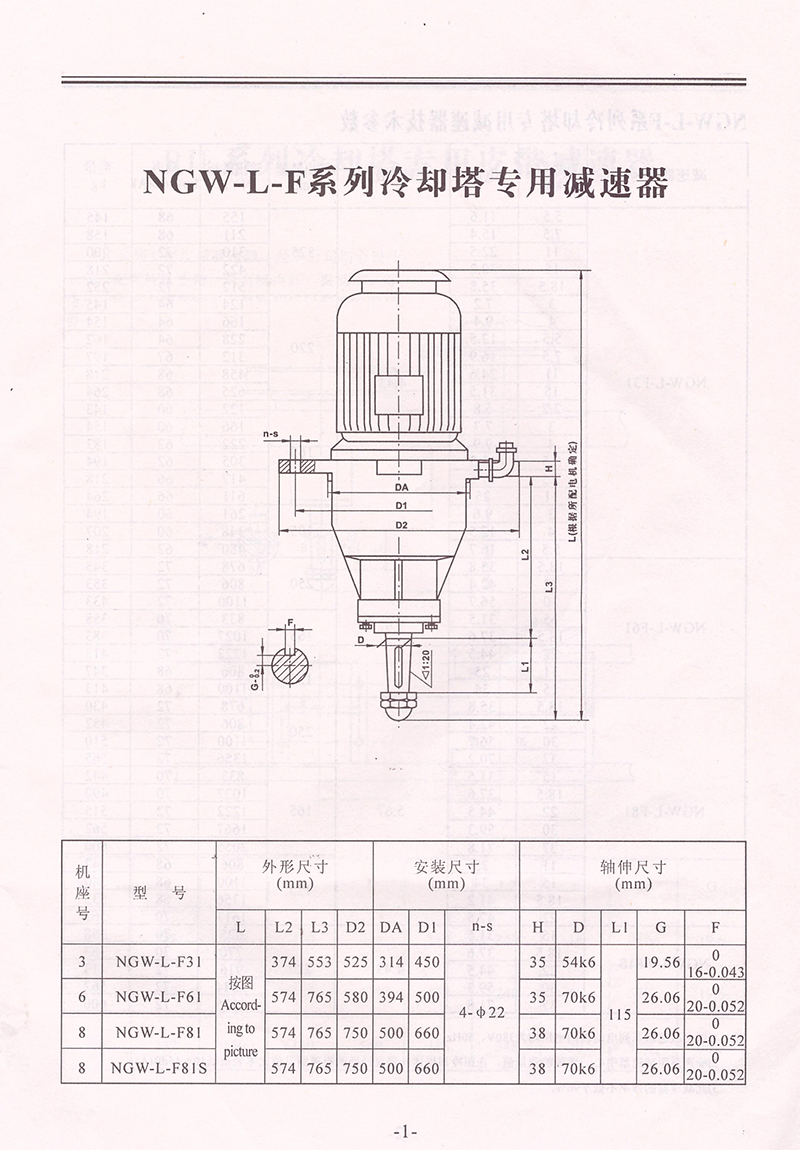 NGW-L-F系列冷卻塔減速機(jī)技術(shù)參數(shù)
